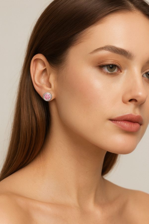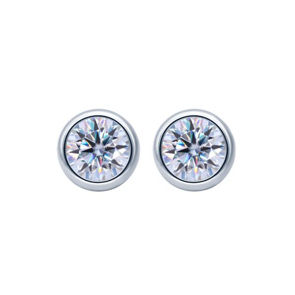 These earrings use a full bezel structure that encloses each moissanite stone for secure wear and an uninterrupted circular outline. The 925 silver rim enhances the clarity and symmetry of the cut, creating a defined, contemporary look suited for everyday fine jewelry. With a flat-backed post design that maintains balance and comfort, this pair offers an efficient, minimal form that integrates easily into refined, versatile collections.
