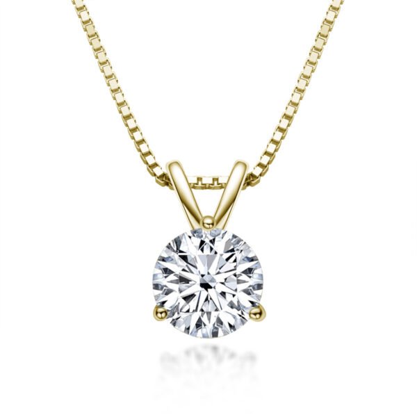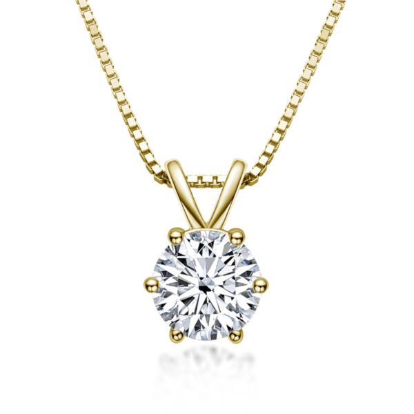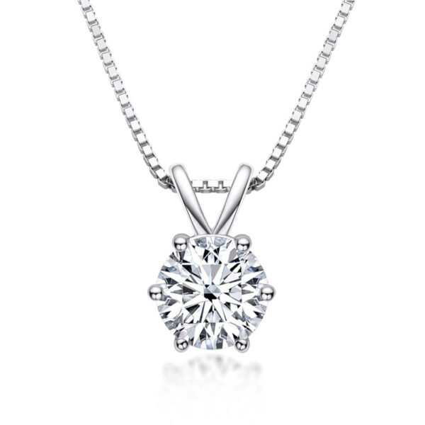 The Classic D-Color Moissanite Solitaire Necklace exemplifies timeless sophistication and refined craftsmanship. Each piece is meticulously crafted in 925 sterling silver, enhanced with either K-gold or K-white gold plating, and features a premium D-color moissanite gemstone of exceptional brilliance.