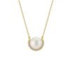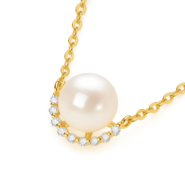 Gold Plated Drift Pearl Necklace from Aestra features a luminous round pearl centered within a half-halo of clear moissanites, suspended on a fine gold-plated chain. Its balanced proportions and polished finish express modern jewelry design with refined detailing suited to everyday fine wear.