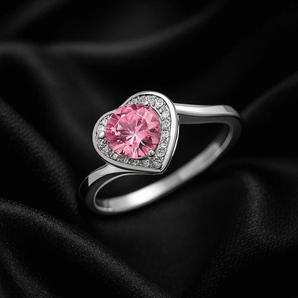 At the heart of this masterpiece lies a dazzling 1.0-carat moissanite stone. Known for its brilliance and fire, moissanite is a sustainable alternative to traditional diamonds. This stone boasts a remarkable D color grade, reflecting a pure, colorless beauty that rivals even the most exquisite diamonds. A captivating pink hue adds a unique twist, making this piece truly one-of-a-kind and a statement of individuality.