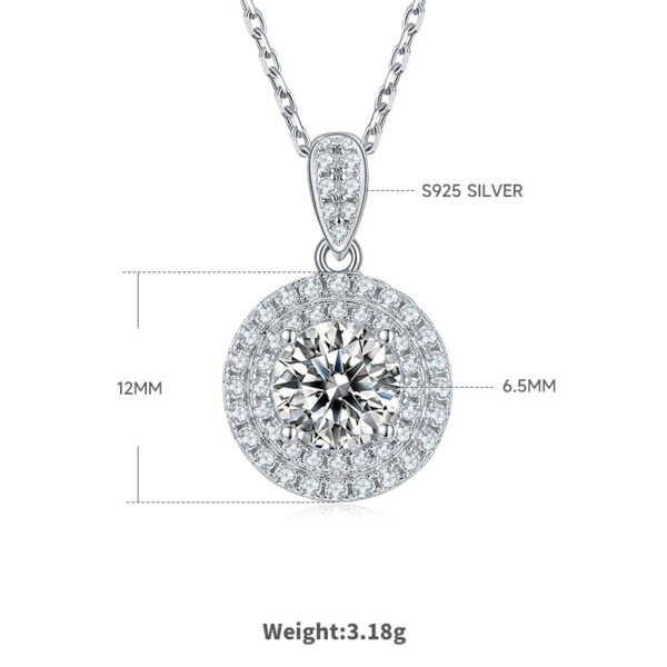 Necklace: 1.0 carat D color moissanite, round-cut for maximum sparkle