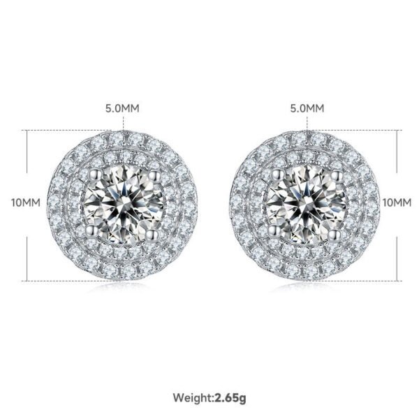Earrings: Two 0.5 carat D color moissanite stones (total 1.0 ct), perfectly matched in classic round cuts