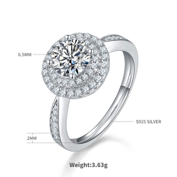 Ring: 1.0 carat round D color moissanite, designed for elegant everyday wear. Ring size: 7